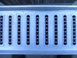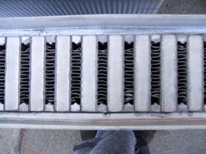 The picture below shows the two different intercooler cores internal air passage- First picture is the extruded tube and the second is the heavy duty plate and bar style.